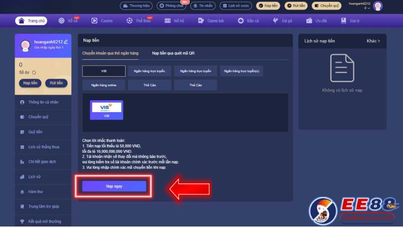 Hướng Dẫn Nạp Tiền EE88 Đăng Nhập Từng Bước
